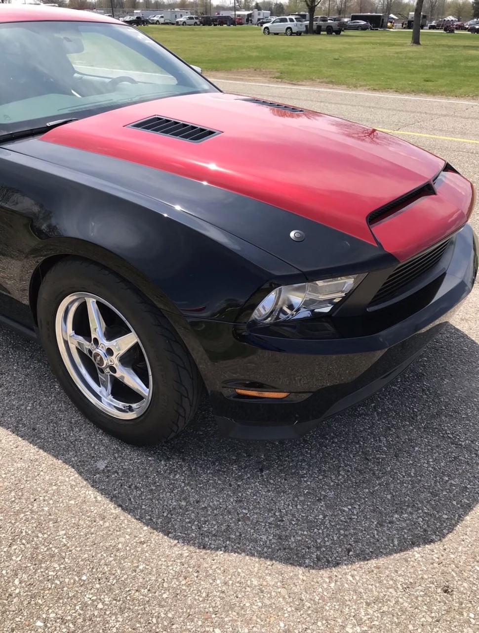 The ceramic black Cerakote finish on these hood pins blends nicely with the overall paint job on this Mustang.